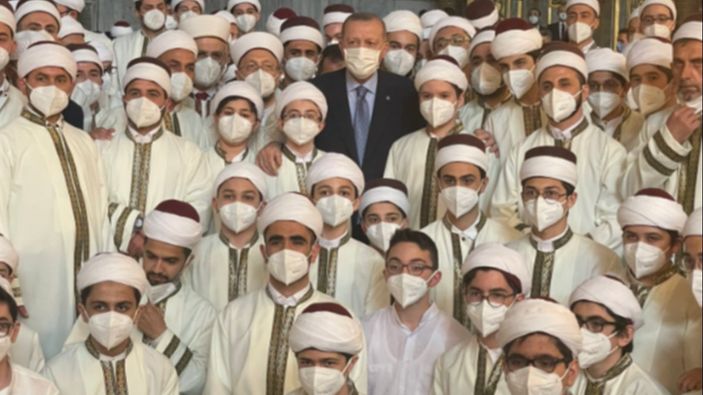 Cumhurbaşkanı Erdoğan, Taksim Camii açılışını gerçekleştirdikten sonra Ayasofya'ya geçti. Cumhurbaşkanı, düzenlenen hafızlık icazet törenine katıldı.