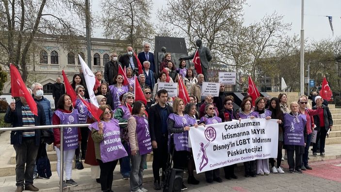 Disney+ kanalının LGBT kararını protesto eden Cumhuriyet Kadınları Derneği üyeleri, "Türk milleti çocuklarını LGBT saldırısına yedirmeyecektir" açıklamasında bulundu.