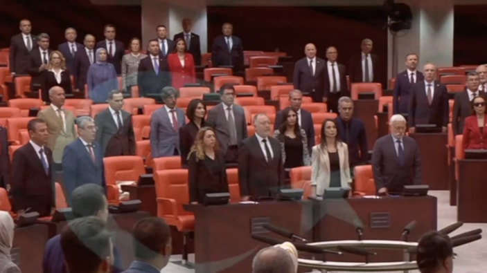 TBMM'nin 23 Nisan için düzenlediği özel oturumda saygı duruşu eşliğinde İstiklal Marşı okunurken, DEM Partili vekillerin ağzını dahi oynatmadığı dikkatlerden kaçmadı.