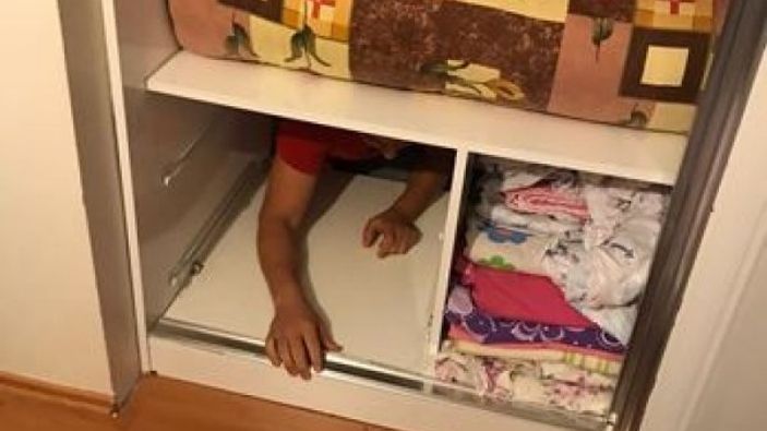 Şüpheli şahısların bulunduğu evde özel olarak tasarlanmış olan elbise dolabına oluşturdukları gizli bölmede 1 şüpheli şahıs yakalandı.