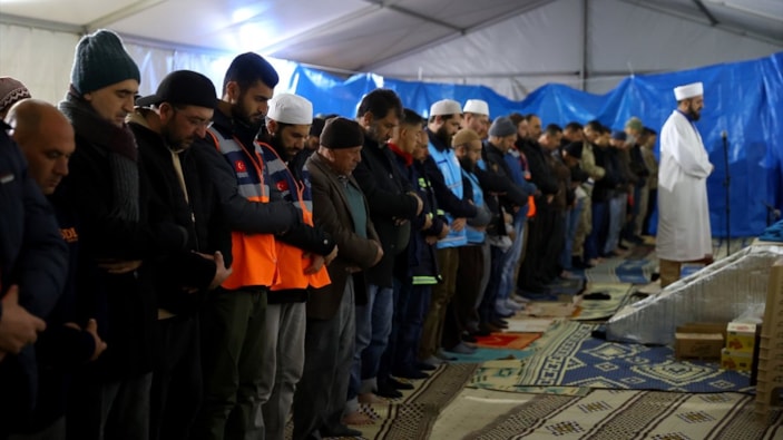 Kılınan namazın ardından depremin etkilerinin hafiflemesi ve yaşamını yitirenler için dua edildi.