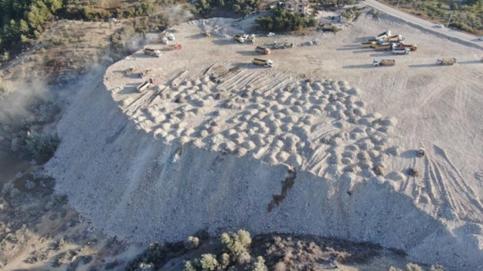 Kahramanmaraş merkezli depremlerden önemli ölçüde etkilenen Antakya ilçesinde, enkazın büyük çoğunluğunun kaldırılmasıyla farklı noktalarda devasa moloz dağları oluştu.