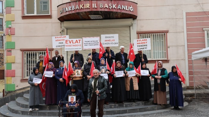 Mardin'den Diyarbakır’a gelerek eski HDP İl Başkanlığı binası önünde oturma eylemine katılan Kamile ve Abdurrahman Karagöz çifti gazetecilere yaptığı açıklamada, çocuğunu PKK'dan istediğini belirterek "Çocuğumuzun gelmesini istiyoruz." dedi.