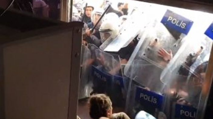 Polis, Barış Pınarı Harekatı'na karşı açıklama yapacak HDP'lilere izin vermedi. HDP'liler ise polise masa fırlattı, uçan tekme salladı.