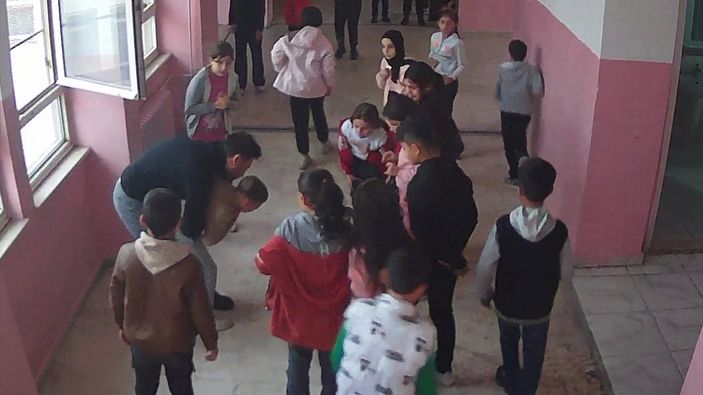 Öte yandan, öğretmenin öğrencisinin hayatını kurtardığı anlar okulun güvenlik kamerasınca kaydedildi.
