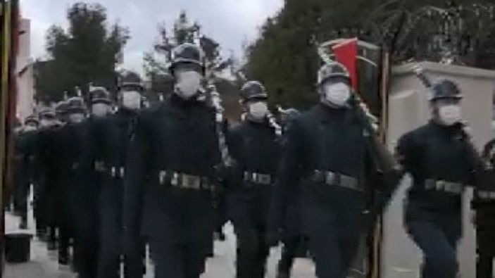 Törenin sona ermesiyle birliklerine dönen askerler, Hava Şehitliği'nden ayrılmak üzere nizami düzen aldı. Askerler, komutanları eşliğinde 'Şehitler ölmez vatan bölünmez' sloganlarıyla yürüdü.
