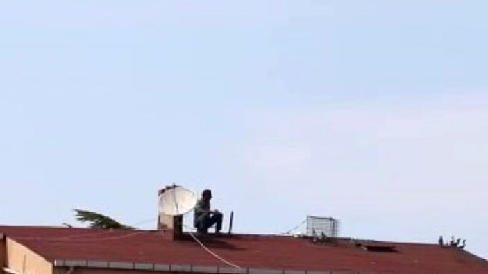 26 Nisan Pazar günü sokağa çıkma kısıtlaması sırasında bir kişi, canını hiçe sayarak çatıya çıktı.