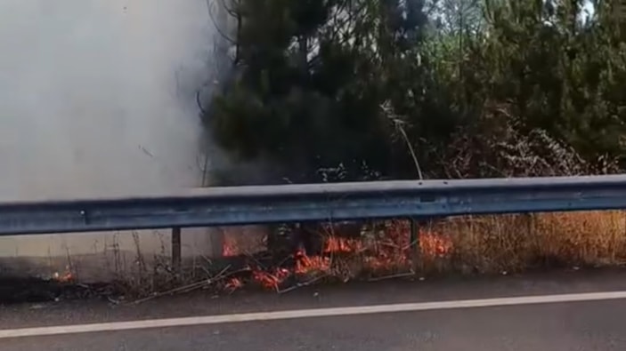 Yangın sonucunda yol kenarındaki otluk alan ile çamlık bölgede kısmi yanmalar meydana geldi.