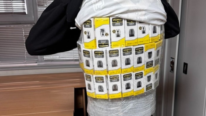 Yapılan kontrollerde araçtaki şüphelilerin vücutlarına 15 adet elektronik sigara, 230 adet elektronik sigara kapsülü, 540 adet vaporizatör başlığı ve 945 adet elektronik sigara vaporizatörü içeren toplam bin 730 paketin vücutlarına yapıştırdıkları tespit edildi.