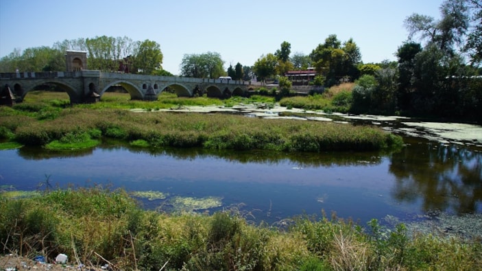 Tunca Köprüsü civarında su akışı büyük ölçüde durdu, nehir yatağı geniş ot öbekleri, sazlıklar ve yosunla kaplandı.