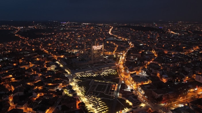 Edirne'de Ramazan mahyası Selimiye'nin güzelliğine renk kattı