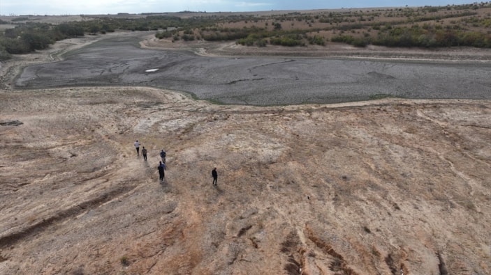 Kısa süreli sağanak geçişlerinin fayda sağlamaması ve göleti besleyen su kaynaklarının da kurumasıyla göletin suyu tamamen çekildi.
