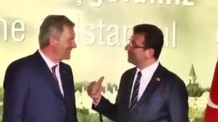 İngilizcesi sosyal medyada dalga konusu olan İmamoğlu'nun Alman yetkili ile Almanca-İngilizce diyaloğu sosyal medyada popüler video edit müziği ile paylaşıldı.