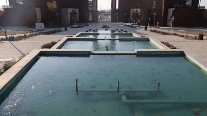 Kent genelinde sıcaklıkların eksi değerlere düşmesi ile kent genelindeki süs havuzları buzla kaplandı.