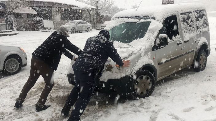 Kar yağışına hazırlıksız yakalanan sürücüler yolda kaldı.