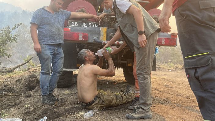 Eskişehir'de orman yangınına müdahale eden 5'i orman işçisi, 5'i AKUT çalışanı 10 kişi şehit oldu. Ekiplerin yanına koşarak gelen bir orman işçisi, "Yanıyorum. Her yerime su dökün" diyerek yaşadıklarını anlattı.