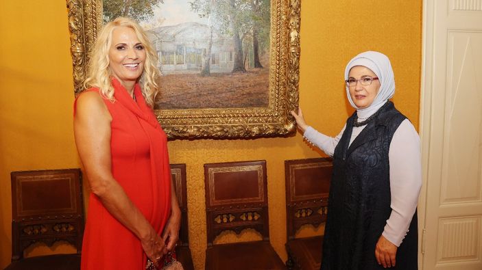 Cumhurbaşkanı Erdoğan'a Karadağ gezisinde eşlik eden Emine Erdoğan, Karadağ Cumhurbaşkanı Milo Cukanoviç'in eşi Lidija Cukanoviç ile birlikte Kral Nikola Müzesi'ni gezdi.