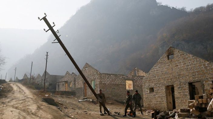 Dağlık Karabağ'ı Azerbaycan'a bırakmadan önce yakıp yıkan Ermenistan, elektrik direklerini bile söküyor.