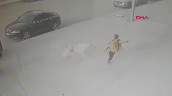 Çocuk çevredekiler tarafından kurtarılırken, olay anı bir marketin güvenlik kamerası tarafından görüntülendi.