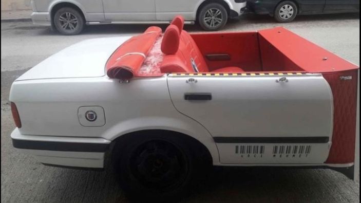 80 bin TL değerindeki 1990 model bir otomobilin sahibi, aracının arka kısmını römork haline dönüştürerek 5 bin TL’ye satışa çıkardı.