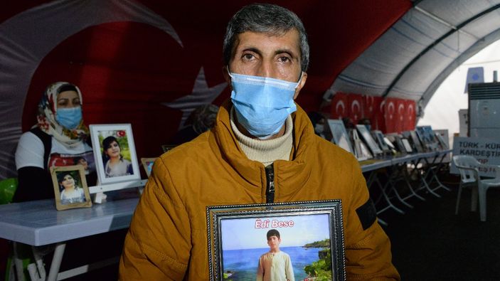 Diyarbakır'da, 5 yıl önce 14 yaşındayken İstanbul'dan kaçırılan oğlu Tuncay’ın bulunması için oturma eylemi yapan Şevket Bingöl, "Dağa götürüp eline silah verdiler." dedi.