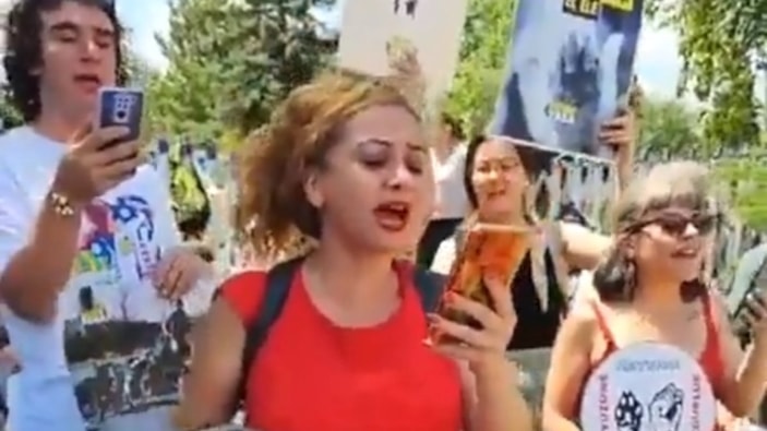 Başıboş sokak köpeği düzenlemesini protesto eden bir grup şahıs, köpeklere uyarladıkları 'Çav Bella'yı söyledi. Kendilerini hayvansever olarak nitelendirenlerin o anları böyle görüntülendi.