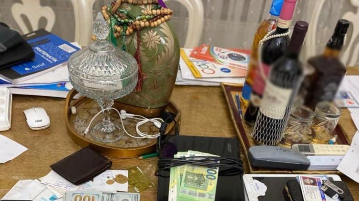 'Gaybubet evlerine’ düzenlenen operasyonlar kapsamında yapılan aramalarda, viski ve şaraplardan oluşan içki şişeleri, binlerce dolar ve euro para ile ziynet eşyası ele geçirildi.