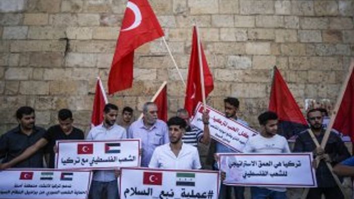 Filistin Dışişleri Bakanı, Barış Pınarı Harekatı'na sessiz kalacaklarını açıkladı, az sayıdaki Filistinli Türk bayrağı açarak "yanınızdayız" mesajı verdi.
