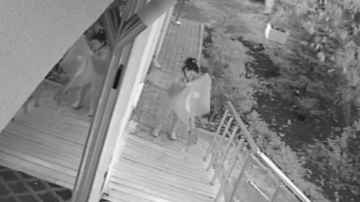 Bahçeye düşen bayrak, o sırada orada oyun oynayan kız çocuğunun dikkatini çekti.
