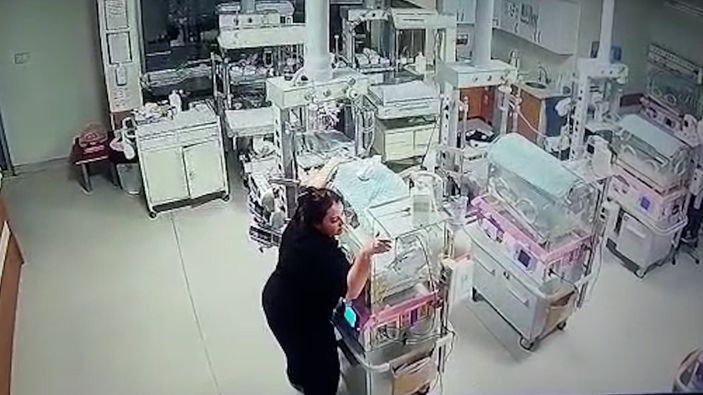 Gaziantep Büyükşehir Belediyesi İnayet Topçuoğlu Hastanesi yenidoğan yoğun bakım ünitesinde deprem anında şiddetli bir şekilde sallanmaya başlayınca bebekleri korumak için Hemşire Devlet NİZAM ve Hemşire Gazel ÇALIŞKAN tarafından gösterilen gayret hastanenin güvenlik kamerasına yansıdı.