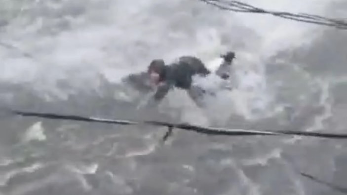 Kadının sel sularıyla mücadelesi ise kameralara yansıdı.
