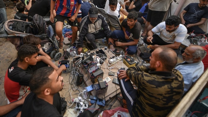 İsrail ablukasında elektriği kesilen Gazze'de insanlar, dünya ile iletişimini devam ettirmek için cep telefonlarını Filistin Kızılayı binasına gelerek şarj ediyor.