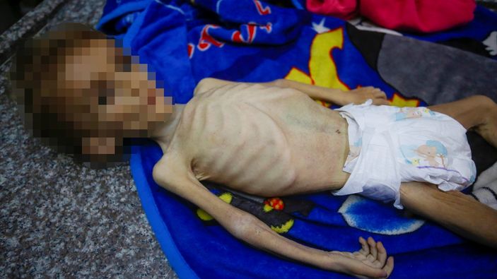 Gazze'nin orta kesimindeki Deyr Belah kentinde yetersiz beslenme sıkıntısı yaşayan bir buçuk yaşındaki Sanaa El Laham, yaşamını yitirdi.