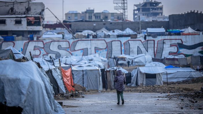 Vatandaşlar, Gazze kentinin batısındaki El-Reşid Caddesi boyunca kurulan derme çatma çadırlarda açlık ve soğukla baş başa kalmış durumda...