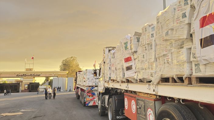 Ateşkesin ardından Mısır’dan Gazze’ye yardım tırları Refah Sınır Kapısı’ndan geçmeye başladı.