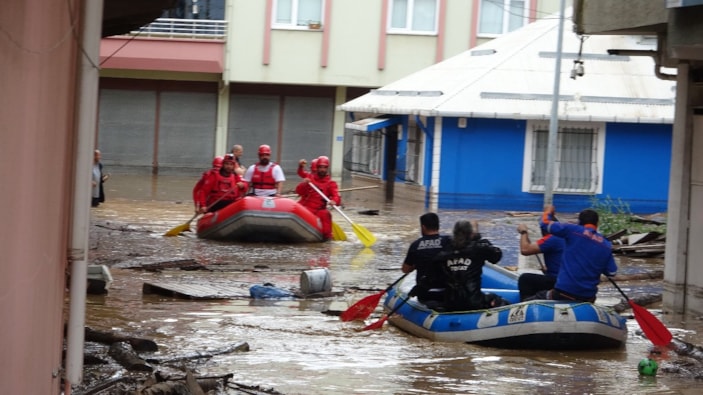 Şiddetli yağış sebebiyle Ordu-Giresun arasındaki Abdal Deresi'nin taşması sonucu bazı ev ve iş yerlerini su basarken, ev ve iş yerlerinde mahsur kalan vatandaşlar AFAD ekipleri tarafından botlarla kurtarıldı.