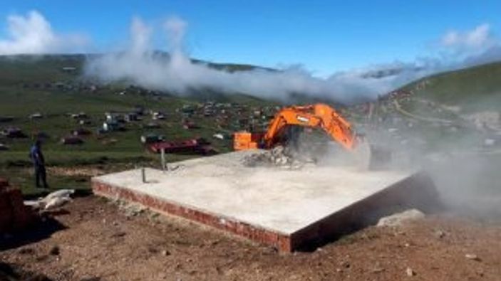 Yayladaki kaçak yapıların yıkımı için ekipler harekete geçti.