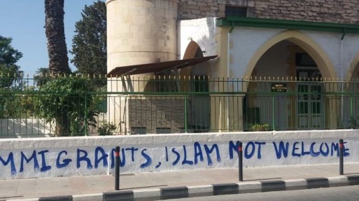Cami duvarına spreyle göçmen ve İslam karşıtı ifadeler de yazıldı. Olayın ardından KKTC Başbakanı Ersin Tatar, saldırıya tepki gösterdi.