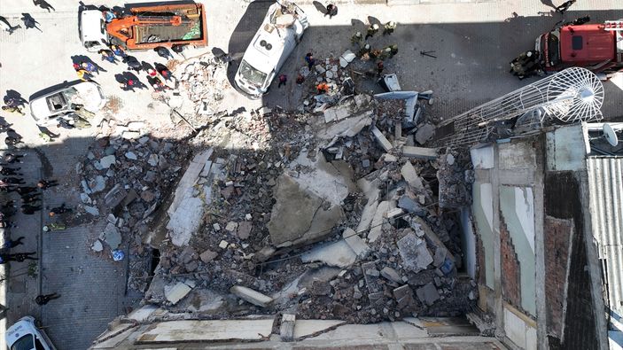 İtfaiye ekipleri binanın enkazında herhangi bir kişinin olma ihtimaline karşı arama çalışması yaparken polis ekipleri de çevrede önlem aldı.