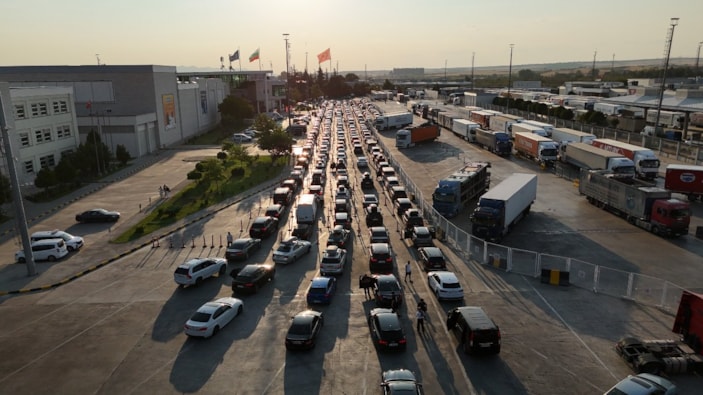 Edirne'nin Kapıkule ve Kapitan Andreevo sınır kapılarında yaşanan yoğunlukla uzun araç kuyrukları oluştu.