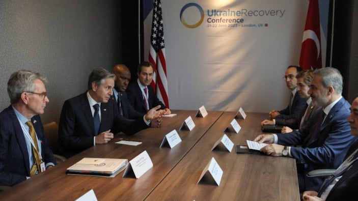 Londra'da gerçekleştirilen toplantıda Fidan ve Blinken'ın, Ukrayna'da devam eden savaşta son durumu ele aldığı belirtiliyor.