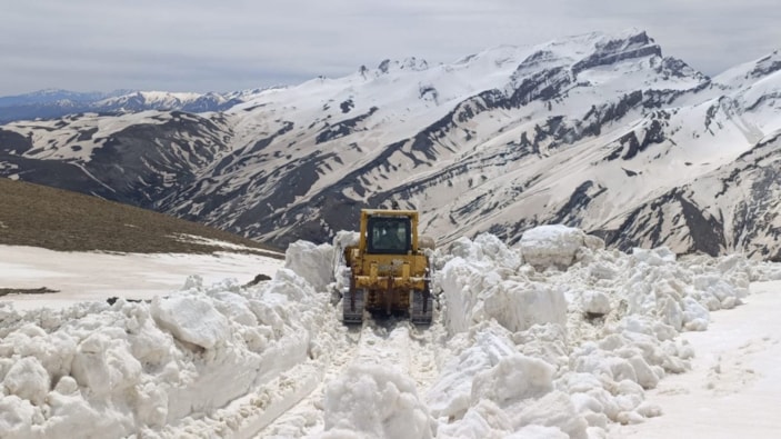 İş makineleri, kar kalınlığının yer yer 4 metreyi bulduğu bazı bölgelerde, kardan tüneller açarak güçlükle ilerleyebiliyor.