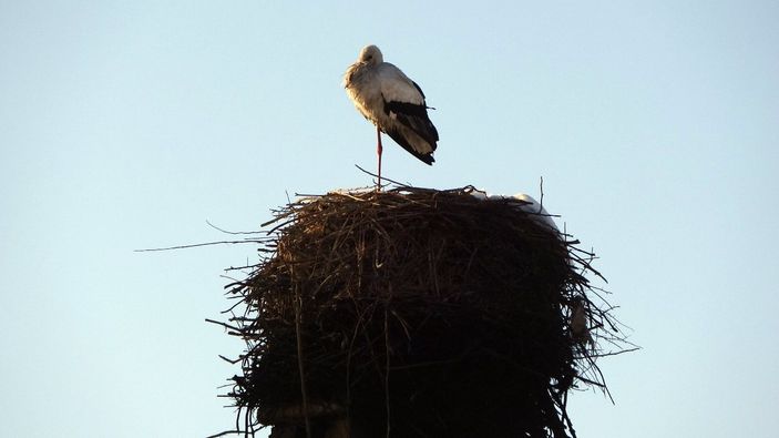 Sonbaharda göçmen kuşların gitmesine rağmen köyü terk etmeyen leyleğe köylüler, gözü gibi bakıyor.