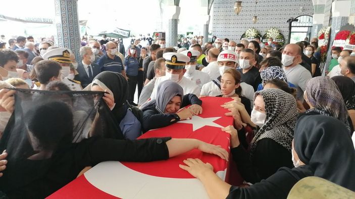 Cenaze töreninde bir askerin gözyaşlarını ise komutanı sildi.