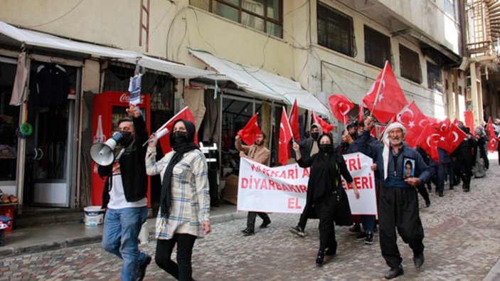 Türk bayrakları ve çocuklarının fotoğraflarıyla HDP il binasına kadar yürüyen aileler, "Hakkari ve Diyarbakır annelerinin haykırışı teröre vurulmuş en ağır darbelerdendir" dedi.