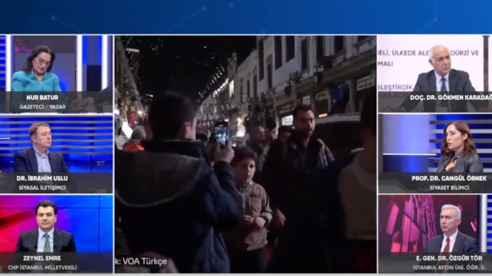 Programın konuklarından biri olan siyaset bilimci Cangül Örnek, Şam'daki görüntüleri 'üretilmiş görüntüler' olarak değerlendirdi.
