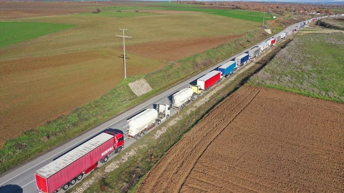 Sınır kapısı önünde uzun tır kuyruğu meydana geldi. Tır sürücüleri, sıranın çok yavaş ilerlediğini söyledi.