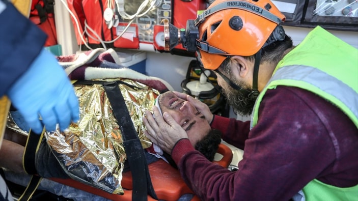 Saatler sonra sıkıştığı yerden çıkarılan adam sedyeyle ambulansa taşınırken, ekipler büyük sevinç yaşadı.