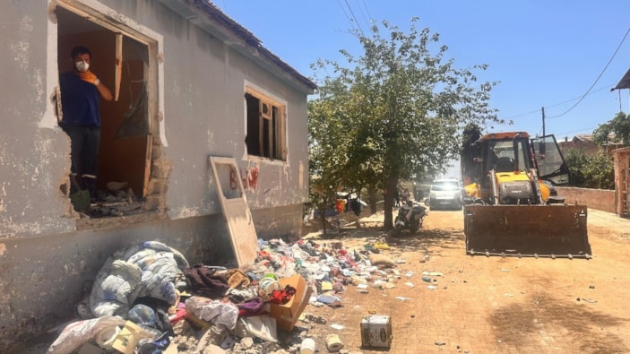 Hatay’da 7 yılda çöple doldurduğu evde temizlik başladı