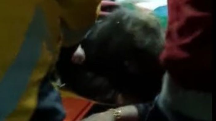 Enkaz altından çıkarılan kadın, mutlu dolu bakışlarla hastaneye yetiştirildi.